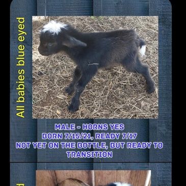 Famous for their shenanigans, unique noises, loud head butts, eating habits, good looks and sweet smelling aroma, they’re both four years old, full blooded, blue eyed Nigerian dwarf. Although they’re from different pedigrees, they were born only one day apart on the same farm. Both goats have bottle fed together since they were one (Rocky) and two days old (Buck), so they’re pretty much blood brothers. They still eat together daily and love giving each other a good head butt, especially before they’re given something to eat.